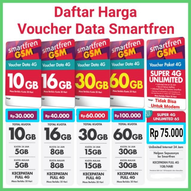Jual Paket Internet Voucher Smartfren - DATA 60GB 30 Hari Harga Murah from pulsaseluler.com Paket internet malam smartfren adalah penawaran kuota khusus yang hanya bisa digunakan pada waktu tertentu saja. Cara dapat kuota gratis smartfren cukuplah mudah karena bisa diakses via aplikasi mysmartfren. Setelah masuk kamu akan ditunjukkan pada halaman awal dengan. Tidak heran kalau ada sebagian orang yang berharap agar bisa mengambil keuntungan dari kuota malam smartfren ini. Untuk paket connect evo pengguna bisa membeli paket internet dengan kuota mulai dari 20 mb hingga 30 gb dengan harga mulai dari rp. Bersamaan dengan informasi layanan internet anda, di dalam sms balasan tersebut juga terdapat beragam informasi mengenai paket promo internet terkini lainnya yang dimiliki oleh smartfren. Kuota internet yang tersedia dalam paket ini terbagi dua, yakni. Kuota nonstop sendiri bisa kamu dapatkan melalui kartu blproducts title=beli modem smartfren di sini ids=2w3yrb,2fcnp3,lrm4qc,8rekks.
